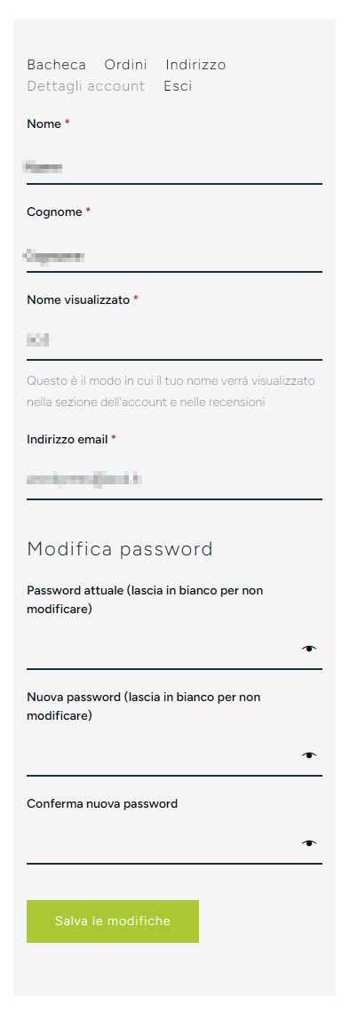 Dettagli account