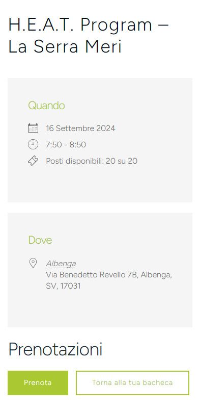I corsi sono prenotabili 72 ore prima dell’inizio del corso stesso.